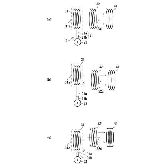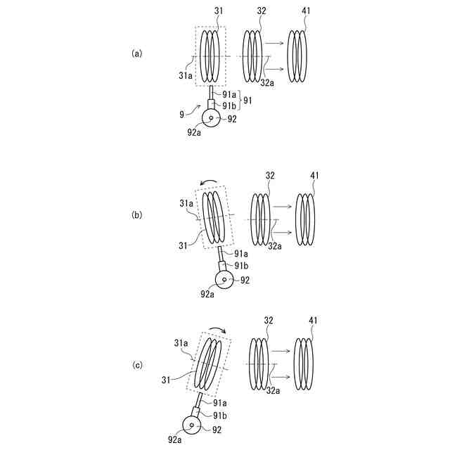 コイル移動機構が、給電コイルをコイル軸に対して垂直方向に移動させる様子を示す模式図である。