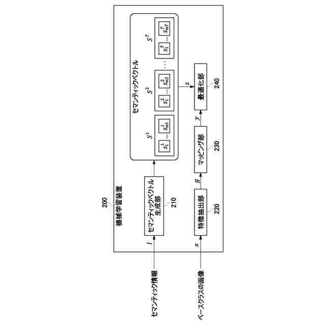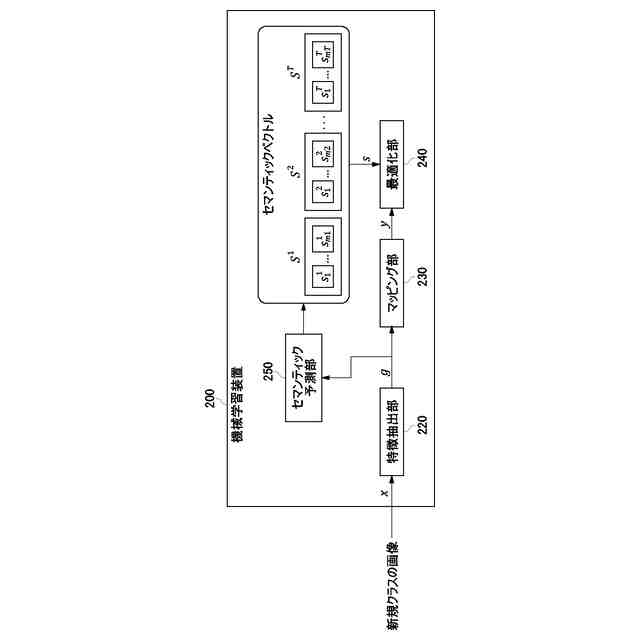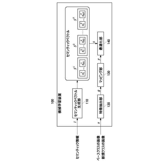【解決手段】機械学習装置200において、特徴抽出部220は入力データから特徴ベクトルを抽出する。セマンティック予測部250は、入力データの特徴ベクトルからセマンティックベクトルを生成する事前にメタ学習されたモジュールである。マッピング部230は、入力データの特徴ベクトルからセマンティックベクトルを生成するベースクラスを学習済みのモジュールである。最適化部240は、新規クラスの学習時に新規クラスの入力データにセマンティック情報が付与されていない場合、セマンティック予測部により生成されたセマンティックベクトルを正解セマンティックベクトルとして、マッピング部により生成されたセマンティックベクトルと正解セマンティックベクトルの距離が最小となるようにマッピング部のパラメータを最適化する。