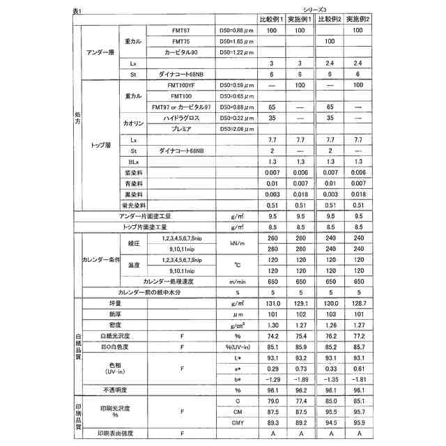 この他に高光沢塗工紙に関して、平均粒子径0.50μm以下の非常に細かい炭酸カルシウムを使用して光沢度を向上させる技術が提案されている(特許文献2)。しかし、粒子径が細かすぎる炭酸カルシムは比表面積も大きくなってしまうため、バインダー要求量が高くなり、結果的に紙力が低下してしまう恐れがあった。
