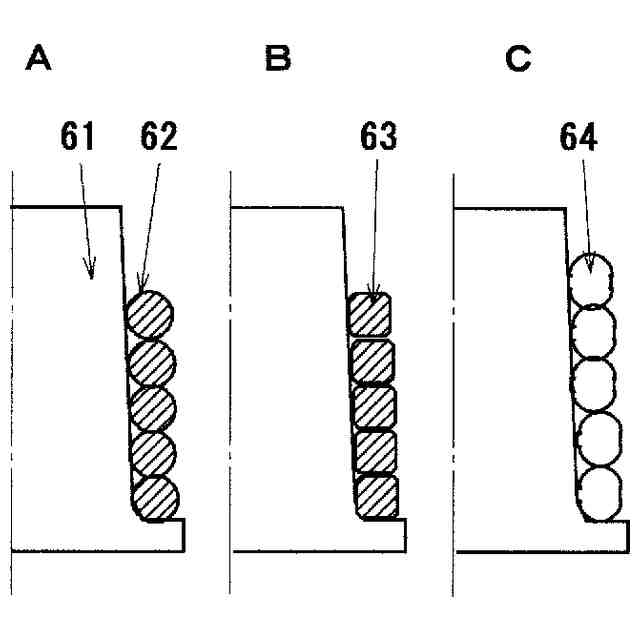 特許文献3には、直進式連伸機において歪み時効による脆化を抑制するため引抜釜の釜径の軸方向傾斜(釜形状を円錐台型にする)を適切に設定することにより鋼線と釜との接触を良くして、重ね巻きを防止し、従って整列巻きを維持し、接触冷却の低下を防止すること、即ち冷却能を上げることが開示されている。本方法は冷却にはそれなりに有効であるが昇温には無関係である。