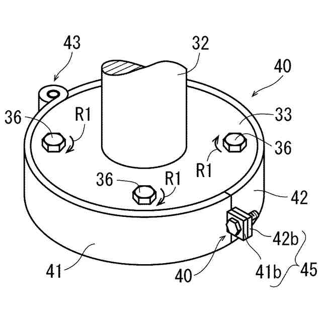 【解決手段】研削ホイールの外周とフランジの外周とに接触する円筒体41、42を備え、該円筒体には、該円筒体の周方向における一方側端部41aと他方側端部42aとを締結する締結部45が形成されており、円筒体41、42の内側に該研削ホイールと該フランジとを収容し、締結部45によって円筒体41、42の一方側端部41aと他方側端部42aとを締結することにより、円筒体41、42の内周を研削ホイールの外周とフランジの外周とに密着させて、該フランジの回転軸心と、該研削ホイールの回転軸心とを一致させる。