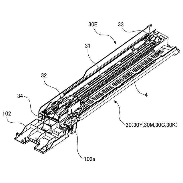 従来の電子写真方式の画像形成装置は、感光体に対して選択的な露光をすることにより静電潜像を形成し、形成した静電潜像をトナーによって現像することにより画像を形成する。このような画像形成装置の露光装置としては、LEDアレイ方式によるLED露光装置が知られている。上述のLED露光装置は、一般的に、発光チップを配列したプリント基板と、レンズアレイと、プリント基板及びレンズアレイを位置決めした後にプリント基板及びレンズアレイが接着剤により接着及び固定される筐体と、から構成されている。