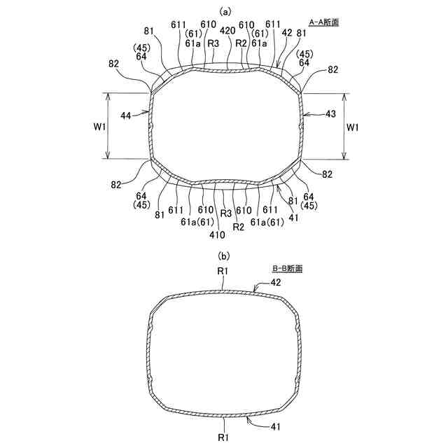 前記側面の前後の前記C面部の間の幅が、35~55mmである、