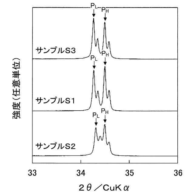 サンプルS1~S3のXRDチャートを並べて示す説明図。