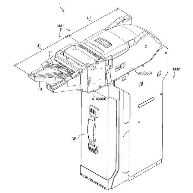 一方、バルクフィーダモジュールとアクセプタモジュールを紙幣取扱装置内に残した状態では、狭い開口部からの作業により処理できるジャムの範囲に限界がある。特に下流側に位置するアクセプタモジュール内で発生したジャム処理は難しい。このため、バルクフィーダモジュールとアクセプタモジュールを、金庫を含むモジュールから取外して紙幣取扱装置の外部でジャム処理できるようにしている。