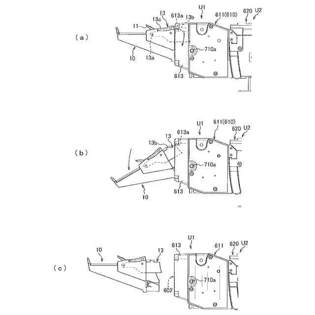 (a)(b)(c)は給紙トレイの着脱構造を示す説明図である。