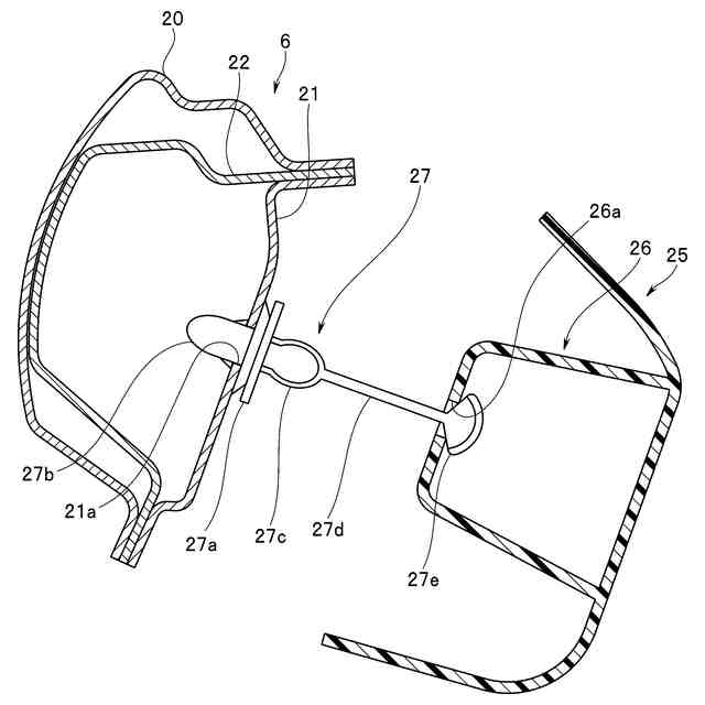 一般に、フロントピラートリムは、フロントピラーのインナパネルに対し、クリップ止めによって取り付けられる。さらに、フロントピラートリムの下部は、インストルメントパネルに対し、係合によって取り付けられる。