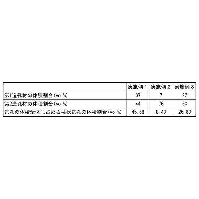 図5は、多孔質体の未焼結成形物における第1造孔材及び第2造孔材のそれぞれの体積割合と、多孔質体に含まれる気孔の体積全体に占める柱状気孔の体積割合とをまとめた説明図である。