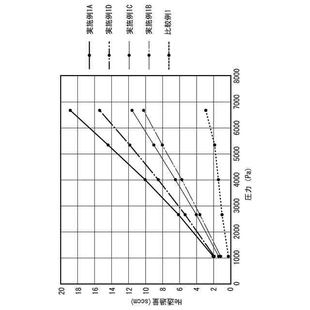 図8は、実施例及び比較例についてのHe透過量-圧力線図である。