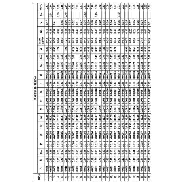 Nb、N含有による析出強化を活用した高Ni合金(以下「Nb、N含有高Ni合金」ともいう。)としては、例えば特許文献1、2のような先行技術文献がある。これらはいずれも上述のとおりNb等の炭窒化物系析出物による析出強化とMo添加による固溶強化、B添加による粒界強化を複合的に活用した合金設計がなされている。Nbの析出強化によるクリープ強度を高めるために最大で1300℃と通常のFe基高合金よりも高温で熱処理している。