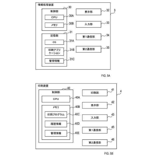図5Aは、第3実施形態の情報処理装置のブロック図である。図5Bは、第5実施形態の印刷装置のブロック図である。