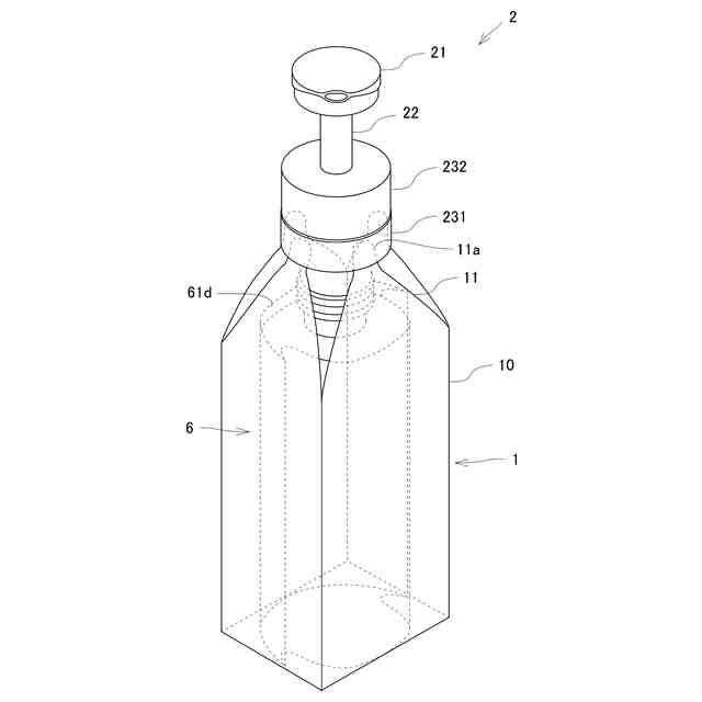 近年では、環境に配慮した樹脂の使用量削減の観点や、粘性の高いコンディショナー等の内容液の詰め替えが難しいことなどから、袋容器(パウチ)の注出口(スパウト)に吐出装置を取り付けて、袋容器から直接、内容液を吐出して使用することが提案されている。なお、吐出装置は、袋容器を交換すれば繰り返し使用できる。