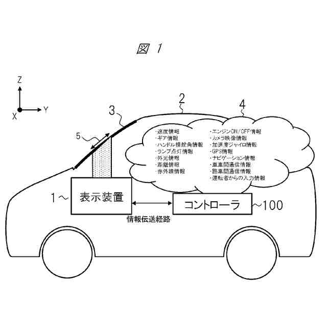 表示装置を実装した車両の概要の一例を示す図である。