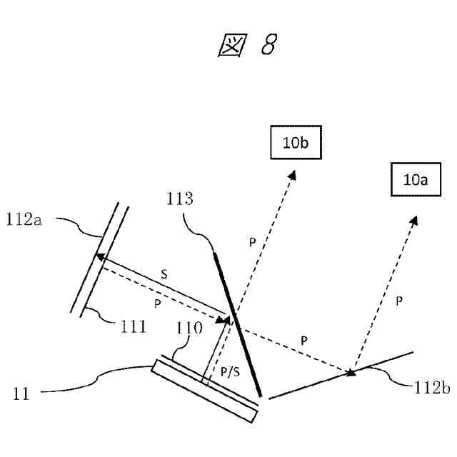 前記分岐部において、前記ビームスプリッタ、前記第1反射ミラー、前記第2偏光変換素子、および、前記第2反射ミラーそれぞれは、同一直線上に並べて配置されている、