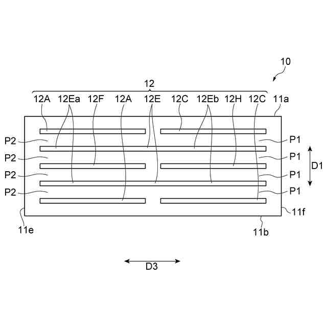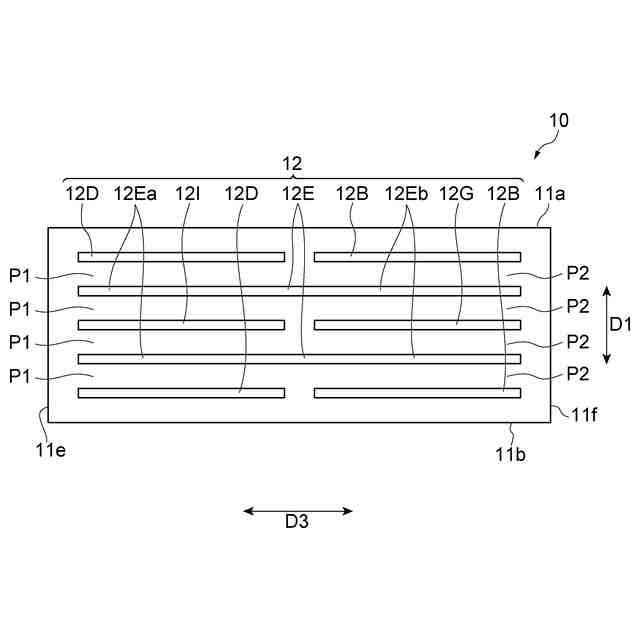 前記第一内部電極と前記第三内部電極とは、同じ層に位置している、請求項7に記載の入力装置。