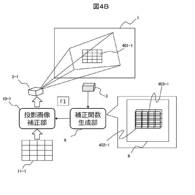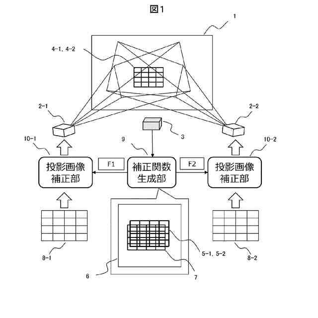 前記補正関数F1によって前記第1のパターンを補正し、前記補正関数F2によって前記第2のパターン補正する投影画像補正部を備え、