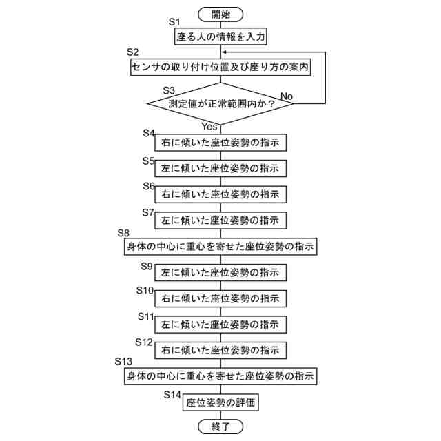 本発明の一実施形態の座位姿勢改善方法のフローチャートである。