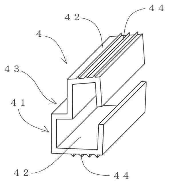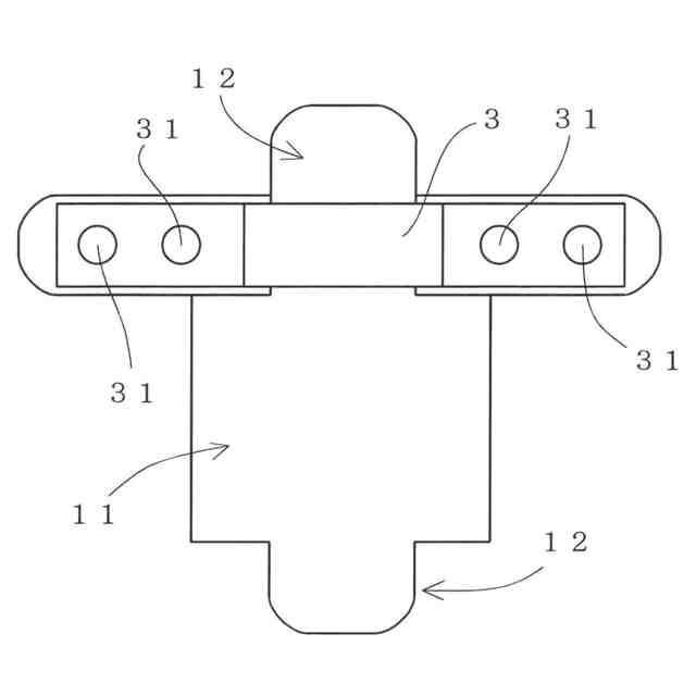 また、本発明は、上記課題を解決するために、必要に応じて上記手段に加え、前記ストッパー4を、テーパ状に拡開する一対の面部42が連結部43で連結された折曲板状に形成して、前記背板1の貫通孔11の内部に付勢状態で嵌着可能にするという技術的手段を採用することもできる。