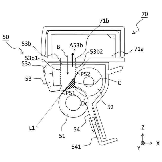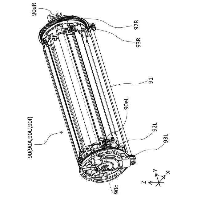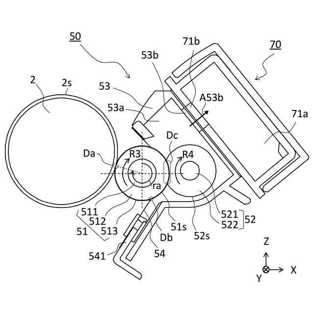 【解決手段】感光体と、収容枠体と現像ローラと供給ローラとを有する回転可能なロータリと、トナーカートリッジと、を備え、供給ローラは、発泡層を有し、供給ローラと現像ローラとの接触部において発泡層が弾性変形するように配置されており、ロータリは、仮想水平面に受入開口を垂直投影した投影領域の面積が最大となる第1姿勢をとることが可能であり、現像ローラの外周面と、供給ローラの外周面と、現像ローラの外周面及び供給ローラの外周面の共通接線と、によって囲まれる領域であって供給ローラの回転方向について接触部の下流側の領域を下流領域としたとき、ロータリが第1姿勢にある状態において、下流領域は受入開口の下方に位置し、且つ鉛直方向に見た場合に受入開口と少なくとも部分的に重なる。