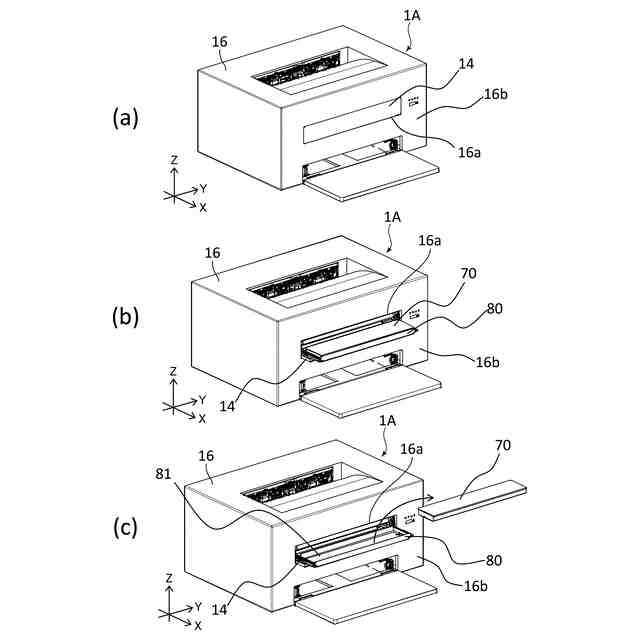 実施例1に係る画像形成装置の斜視図(a~c)。