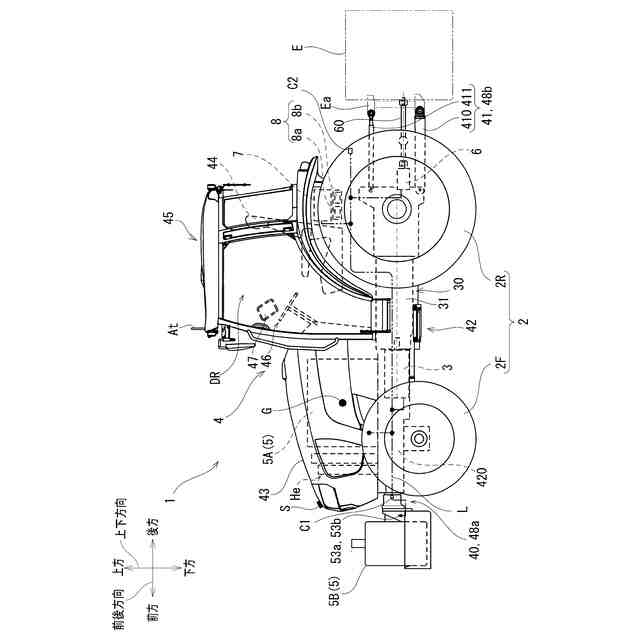 図1及び図2に示すように、作業車両1には、作業場で所定の作業を行う作業装置Eが連結される。作業装置Eは、作業車両1の前方又は後方(図1及び図2においては、後方)に配置された状態で作業車両1に連結される。本実施形態において、作業車両1は、作業場である圃場で使用される農業用の作業車両(トラクタ)である。図1及び図2において、作業装置Eが仮想線で簡略化して図示に示されているが、作業車両1に連結される作業装置Eには、例えば、圃場の土を耕すロータリ(耕耘装置)や、圃場の土壌の天地返しを行うプラウ、圃場の土の塊を破砕するソイラー、ハロー、畔塗を行う畔塗機、圃場に種