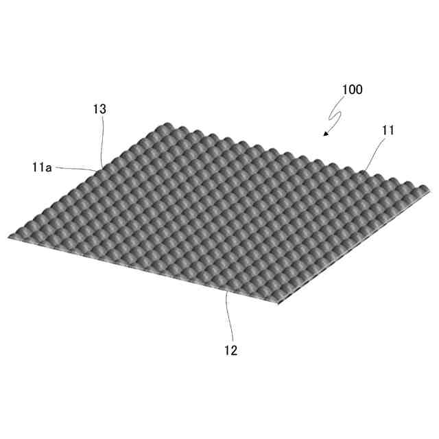 前記凸形状部の各々の頂点における厚みにおいて、前記凸形状部の頂点における厚みの全ての中で最も厚い部分と最も薄い部分との差Dが、1μm以下であり、