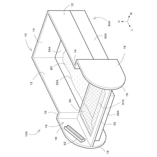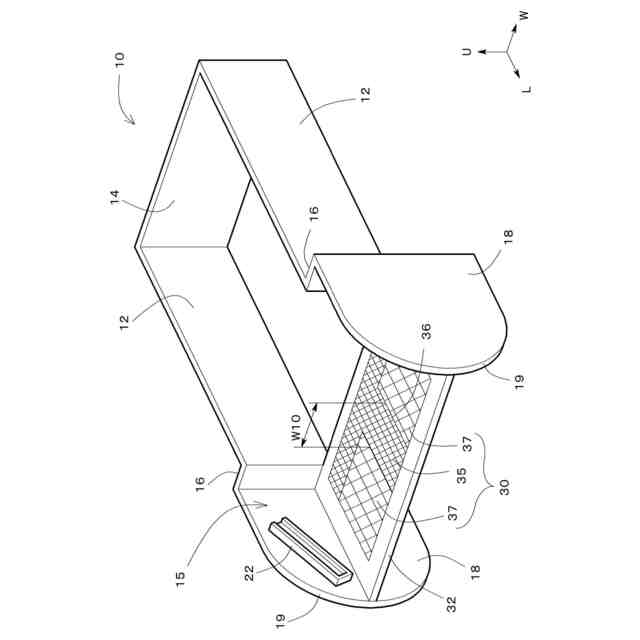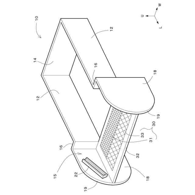 また上記構成において、一対のトレイは、出入口領域と終端領域を備えてよい。出入口領域は、メッシュと上下方向に重なる。終端領域は、出入口領域とは対向する。一対のトレイの底壁は、曲面構造である。すなわち、トレイの底壁は、終端領域から出入口領域に向かって浅くなる。