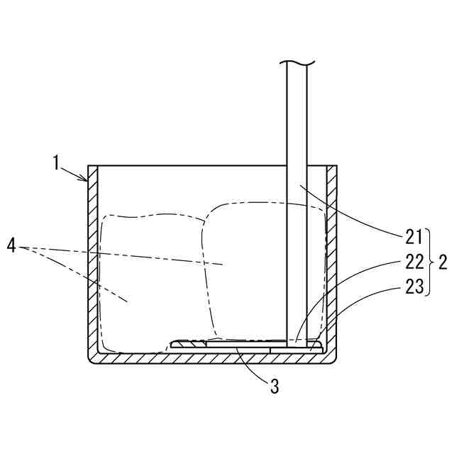 本発明において、前記重しとしては、荷重受けプレートに支柱を固定する十分な荷重を加えることができれば、特に限定されないが、たとえば、袋体内に粒状体が充填された重し袋が好適である。すなわち、容器の大きさに応じて袋体に充填する粒状体の充填量を調整することができる。また、かかる重し袋は、1つでも複数用いられても構わない。