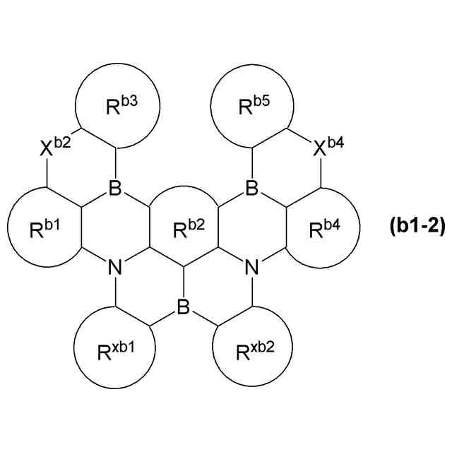 (i)前記複素環骨格(b)の縮合環内に含まれる、前記ホウ素原子、前記窒素原子、前記酸素原子、前記硫黄原子、前記セレン原子及び前記sp