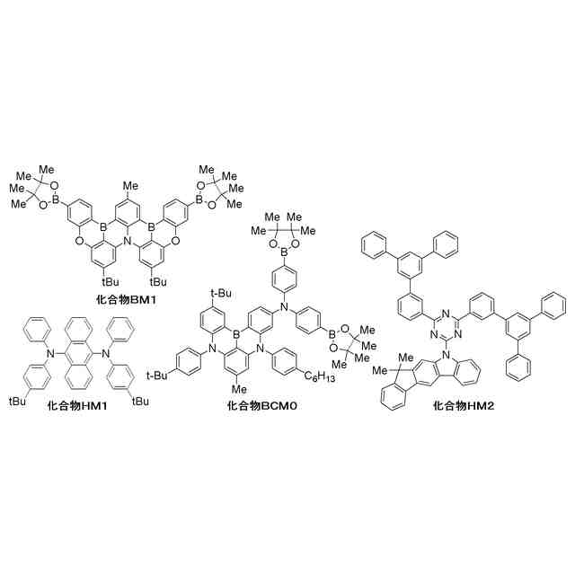 有機エレクトロルミネッセンス素子等の発光素子は、ディスプレイ及び照明の用途に好適に使用することが可能である。発光素子の発光層に用いられる発光材料として、例えば、特許文献1では、化合物BM1から誘導される構成単位を含む高分子化合物と、化合物HM1とを含有する組成物が記載されている。特許文献2では、化合物BCM0から誘導される構成単位を含む高分子化合物と、化合物HM2とを含有する組成物が記載されている。