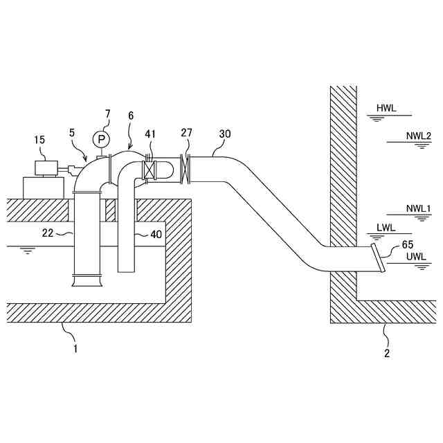 従来の吸い上げ式の横軸ポンプシステムにおいては、真空ポンプでポンプケーシング内部を吸気し、満水検出器で満水を検出した後に、駆動機である電動機を起動し横軸ポンプ(主ポンプ)を始動している。このような運転方法では、始動時におけるポンプトルク(ポンプ回転体を回転させるために必要なトルク)が大きくなり、十分な始動トルクを発生できる駆動システムを選定する必要があった。このような駆動システムにおいては、大きい始動トルクを発生するために必要な始動電流も大きくなるため、その始動電流を抑制するために高価な電動機や始動方式を採用する必要があった。