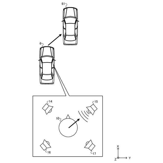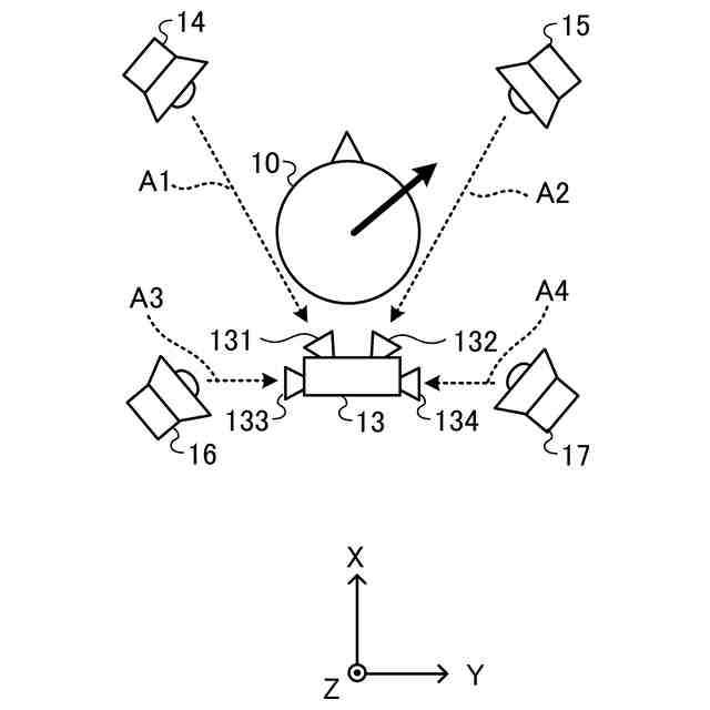 図3は、実施形態に係る第1~第4出音装置および収音装置の設置位置を示す説明図である。