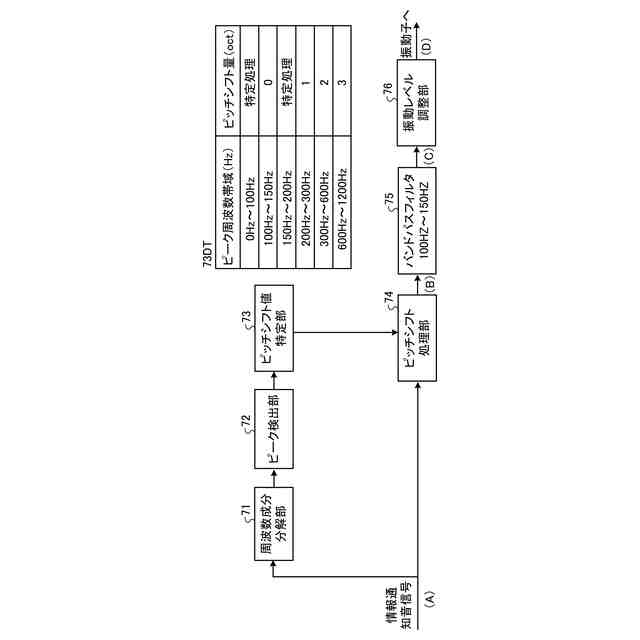 前記ピッチシフト処理信号を前記情報通知振動信号として出力し、