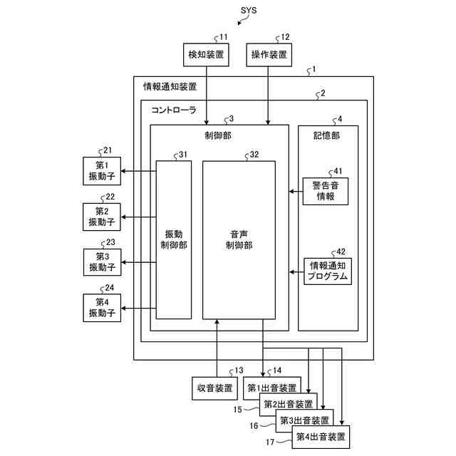 警告音と振動とによって車両周囲の状況を通知する情報通知装置がある(例えば、特許文献1参照)。振動によって情報を通知する方法としては、固定的な振動を用いる方法、警告音を加工して生成した振動を用いる方法等がある。