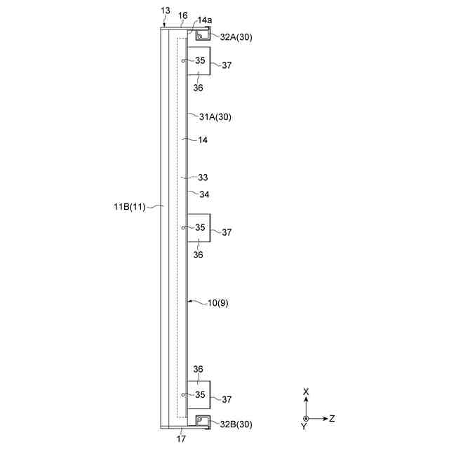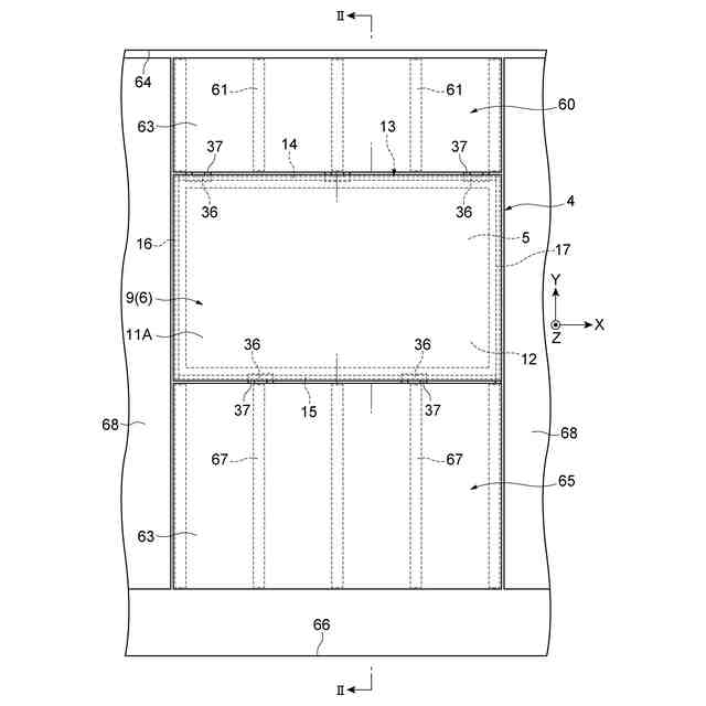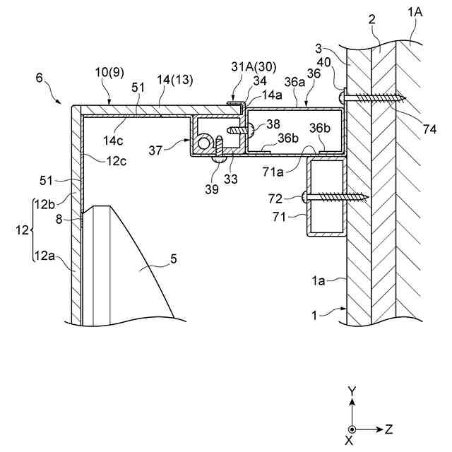 (2)上記の(1)において、透過抑制部材は、正面板の周辺領域の内面に設けられると共に、側板におけるディスプレイ側の内面に設けられていてもよい。このような構成では、正面板の周辺領域において光が透過することが抑制されると共に、側板において光が透過することが抑制される。従って、建築壁の正面側からディスプレイが視認されることを更に抑制できる。