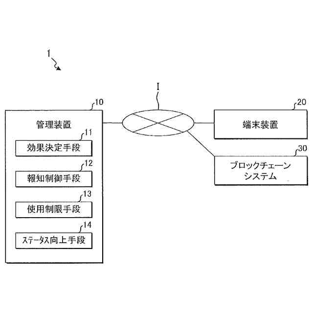 図1は、情報処理システム1000の各構成を説明するための図である。情報処理システム1000は、サーバ装置100、端末装置200およびブロックチェーンネットワーク300を含んで構成される。図1に示す通り、以上の各構成は、ネットワークIを介して通信可能である。ネットワークIとしては、例えば、インターネットが想定される。