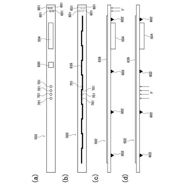(a)、(b)、(c)、(d)実施例に係る基板の説明図