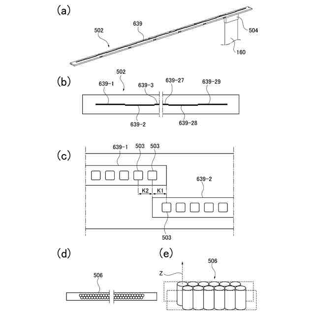 (a)、(b)、(c)基板を示す図、(d)、(e)レンズアレイを示す図