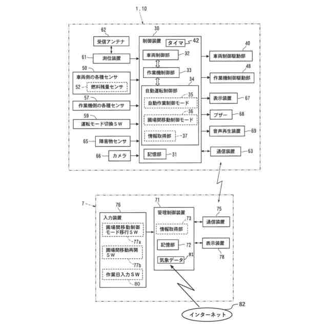 前記の屋外作業車は、管理者が操縦することなく、自動走行で省力的な農作業を行うことが可能であるが、圃場を繋ぐ道路が舗装されていない農道のために、降雨などで崩れることがあったり、濃霧の発生によって自動走行が困難になったりすることがある。