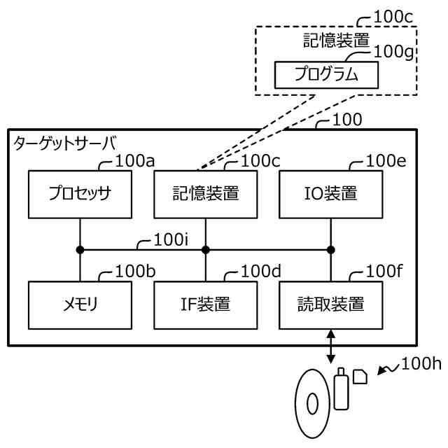 一実施形態に係るターゲットサーバを実現するコンピュータのハードウェア(HW)構成例を示すブロック図である。