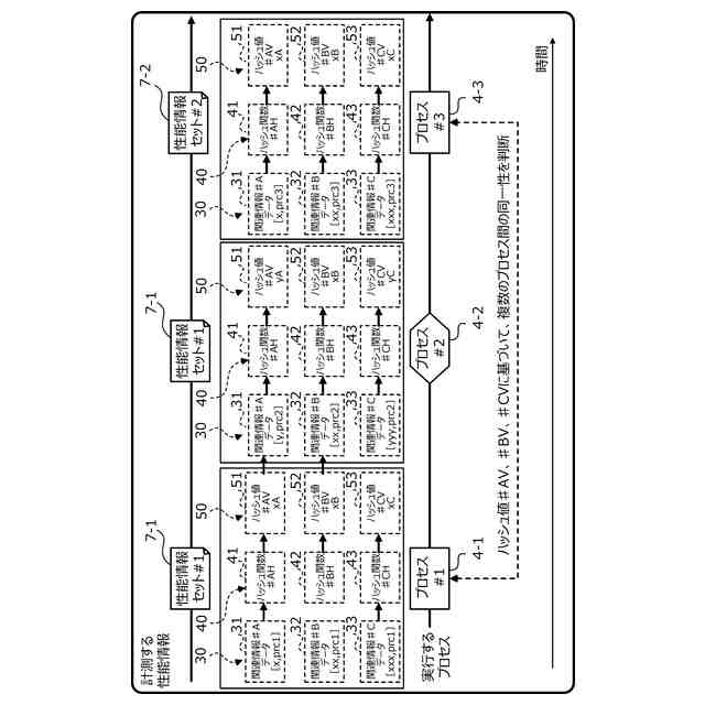 【解決手段】性能分析の対象の情報処理装置100は、性能分析の対象である情報処理装置100において実行される複数のプロセス4のそれぞれに関連する関連情報30の値を取得し、複数のプロセス4のそれぞれについて取得された関連情報30の値をそれぞれ、ハッシュ関数40に入力することによって複数のプロセス4のそれぞれについてハッシュ値50を算出し、複数のプロセス4に含まれる第1のプロセス4-1と第2のプロセス4-3とにおいてそれぞれ算出されたハッシュ値50が一致する場合には、第1のプロセスの実行状態において計測された第1の性能情報7-1と少なくとも一部が異なる第2の性能情報72を第2のプロセス4-3の実行状態において計測する。