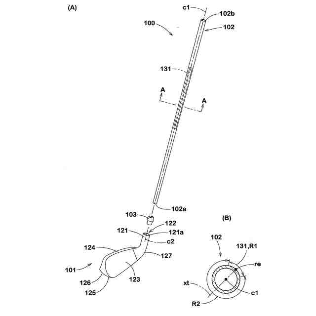 (A)は、ゴルフクラブの分解斜視図、(B)は、A-A線断面図である。