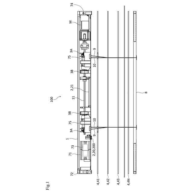 前記ヘッドボックスから吊下支持されている複数段のスラットおよびボトムレールと、