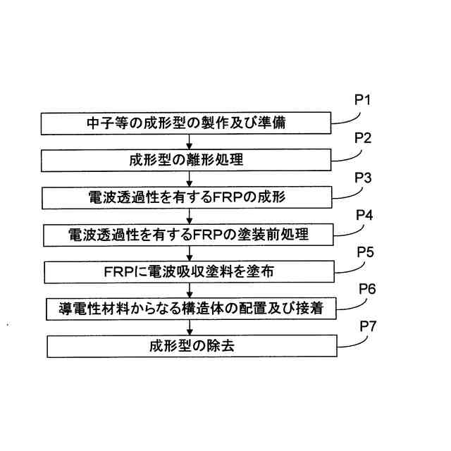 前記成形型の上に載置された状態の、成形後における前記繊維強化プラスチックに電波吸収塗料を塗布するステップと、