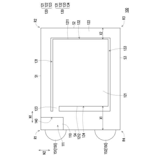 本発明の1つの実施形態において、上述した第2領域は、第1領域に直接隣接して完全に取り囲み、第3領域は、第2領域に直接隣接して完全に取り囲み、第1領域、第2領域、および第3領域は、互いに重ならない。