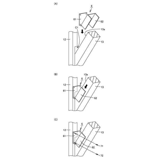好ましくは、ベース部は、異形スタッドの弱部と、弱部の上方または下方に位置する一般部とに跨って配置され、締結部材は、ベース部の上下端部を、弱部および一般部に連結固定する。