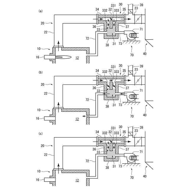 また、本発明の火葬設備は、前記蓄熱体が、筒状に配置されており、前記蓄熱体側の前記流路は、前記蓄熱体の内周側から外周側へ通過する流路であって、前記排ガスの熱が前記蓄熱体に蓄熱されるものであり、前記バイパス路側の前記流路は、前記蓄熱体の内周側を中心軸に沿って通過して前記バイパス路へ至る流路であるものであってもよい。