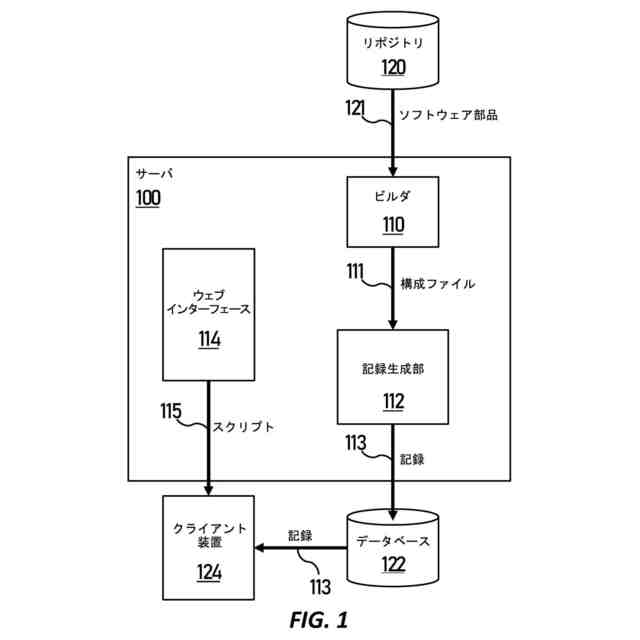 図1は、本開示の少なくともいくつかの実施形態による、ソフトウェア開発の視覚化のためのシステムの模式図である。システムは、サーバ100、リポジトリ120、データベース122およびクライアント装置124を含む。