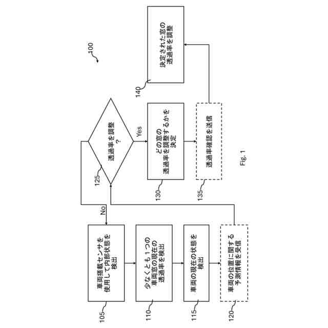 図1は、いくつかの実施形態に従った、車両のガラスの透過率を制御する方法のフローチャートである。