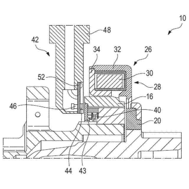 前記センサ装置(42)は、前記シフトスリーブ(16)の側面(41)の軸方向に隣接して配置され、前記センサ装置(42)と前記側面(41)との間に軸方向の隙間が形成され、前記ホールセンサ(44)は、軸方向の隙間の幅を検出するように構成される、